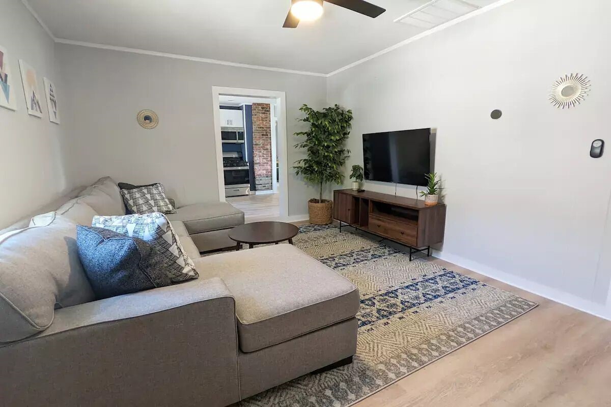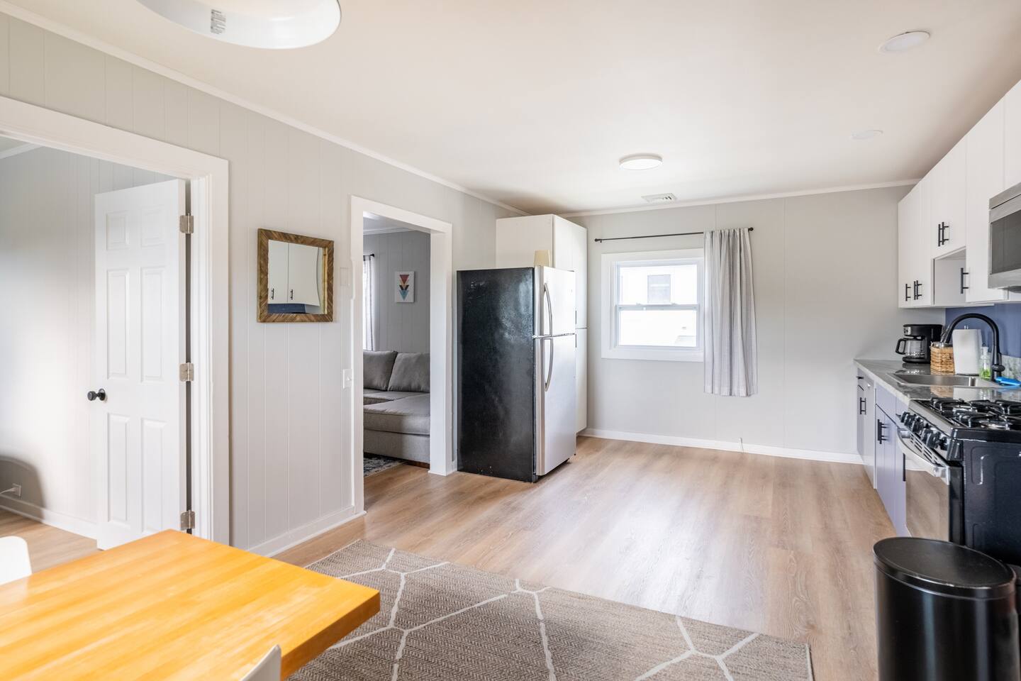 This beautiful private apartment was newly renovated to be stylish, clean and most importantly, comfortable. It is on the entire 2nd floor of a duplex, with a private entrance. The master bedroom is huge, featuring a walk in closet, king size bed and TV. The second bedroom has a full size bed and armoire. Enjoy cooking in the clean modern kitchen with brand new stainless appliances, and eat at the butcher block dining table. There is an ensuite washer and dryer outside of the bathroom for your convenience.