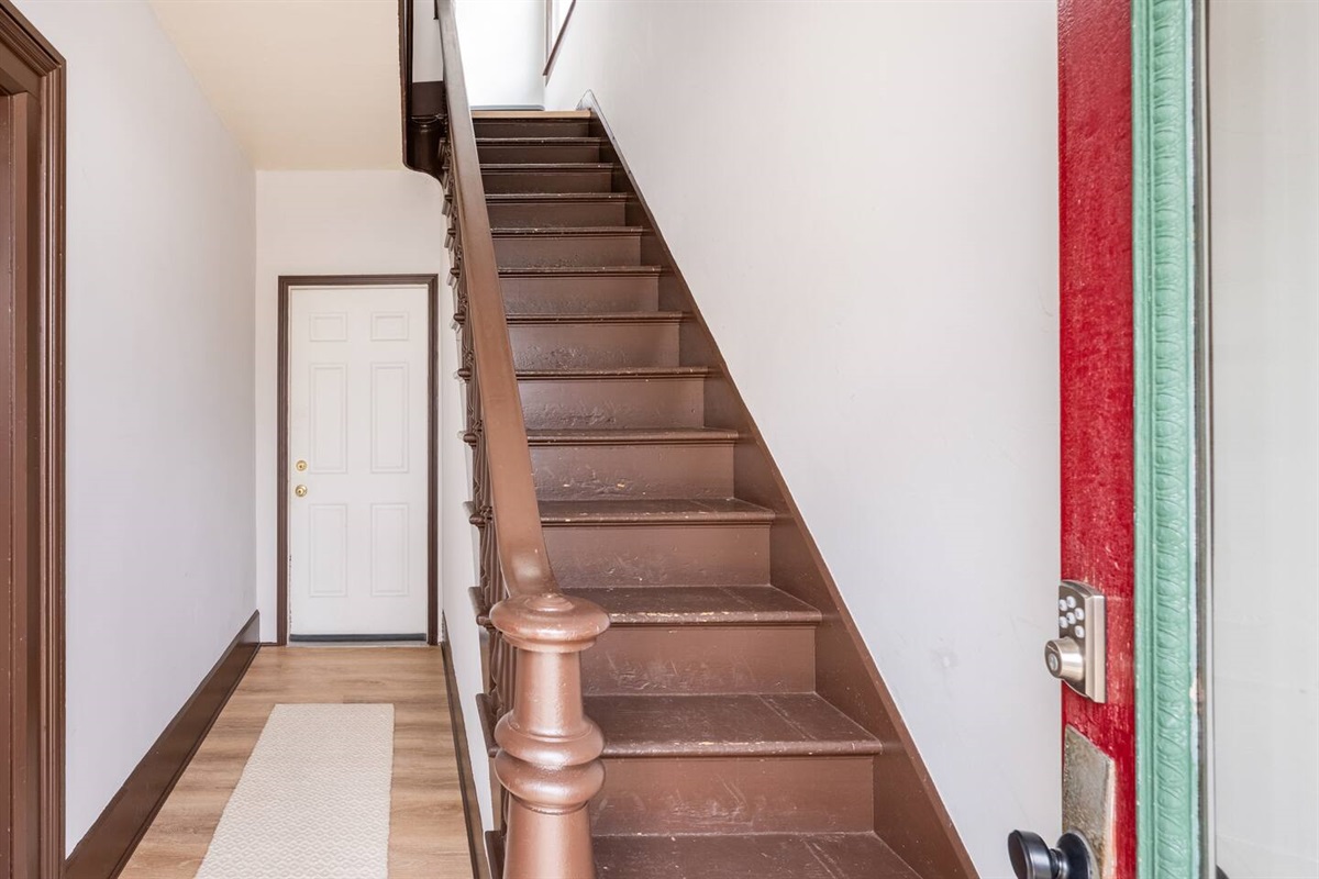 This apartment is on the entire 2nd floor of a duplex. It has a private entrance at the front of the building. You will be given a code to enter with an electronic keypad.